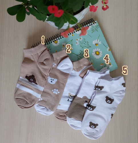 جوراب زنانه مچی طرح تدی سفید نسکافه ای